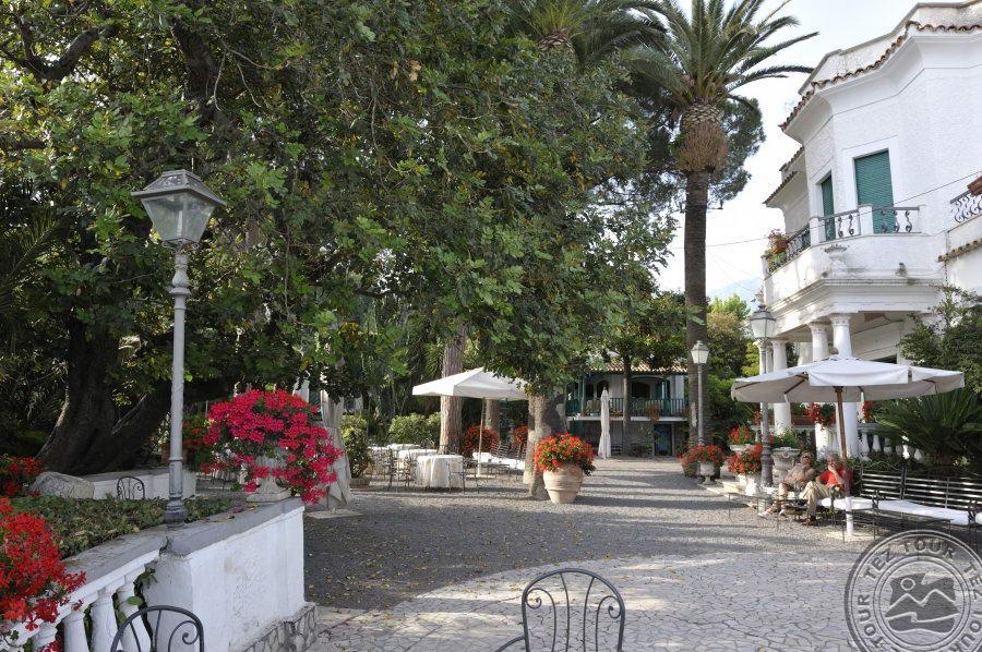 Уникальный отельный комплекс для романтиков, Grande Albergo Miramare расположен на берегу залива Гаэта, в 2 км от центра курортного городка Формии в бывшей летней резиденции итальянских аристократов. Комплекс состоит из небольших двух- и трехэтажных изящных вилл, окруженных старинным ухоженным парком с вековыми сосновыми деревьями, пальмами и цветущей бугенвилией, с фонтанами, зелеными лужайками, декоративными кувшинами. Несмотря на то, что рядом с отелем проходит дорога на Неаполь, на территории отеля уютно и довольно спокойно (очень много деревьев и птички поют). Недавно отель был полностью отреставрирован. Интерьеры оформлены в венецианском стиле, все комнаты не похожи друг на друга. Отель пользуется популярностью у молодоженов, здесь часто проводят свадебные банкеты. Жители Неаполя и Рима любят приезжать сюда на выходные семьями. Высокий уровень обслуживания, вежливый и предупредительный персонал, очень ухоженная территория, уютная домашняя атмосфера. |
