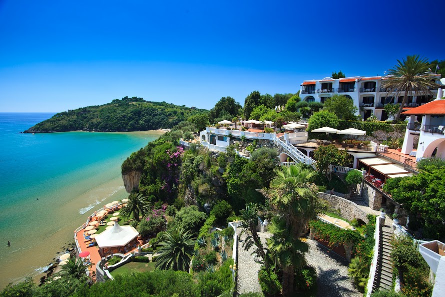 Маленький тихий уютный гостиничный комплекс Le Rocce расположен в живописной бухте на берегу Тирренского моря, в 7 км от центра курортного городка Гаэты. Первоначально отель строился как личная резиденция Джины Лолобриджиды и внешне напоминает богатую летнюю усадьбу, состоящую из нескольких белоснежных вилл, которые спускаются по склону к самому морю. Отель утопает в средиземноморской зелени. Ансамбль дополняют многочисленные лужайки-террасы и извилистые мраморные лестницы, ведущие к пляжу (отель расположен на склоне, поэтому к пляжу и ресторану необходимо спускаться по лестницам). С террас отеля и из большинства номеров открывается изумительный вид на залив и многочисленные яхты. Очень красивый отель с отличным сервисом и просторными комфортабельными номерами, без претензии на роскошь, рекомендован для спокойного уединенного отдыха на территории отеля. |