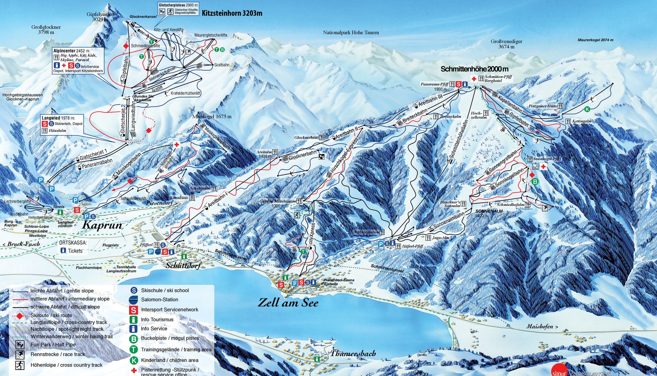 Провинциальный город Капрун находится всего в 20минутах от подножья горы Китцштайнхорн, высота которой составляет 3203 метров. Именно в Капруне многие находят то, что их привлекает в АвстрийскихАльпах - тишина, красота,атмосфера… Компактность Капруна делает непринципиальным выбор отеля, так как вы всегда в центре курорта. Катание на ледникеКапрунвместе с прогулками по средневековому замку, занятиями в спортивном центре, посещением ресторанчиков австрийской кухни, кафе, дискотек, кегельбанов,ледовых катков– все это делает проведение досуга как можно активнее. Капрун– отличная возможность мягкого комфортного катания и отработки техники катания на лыжах.